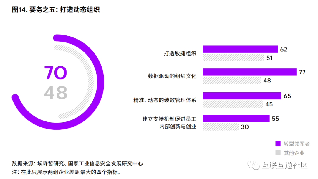 本研究显示领军者尤其在数据驱动的组织文化变革上更加积极主动,并配合新的绩效管理和 激励机制(图14)