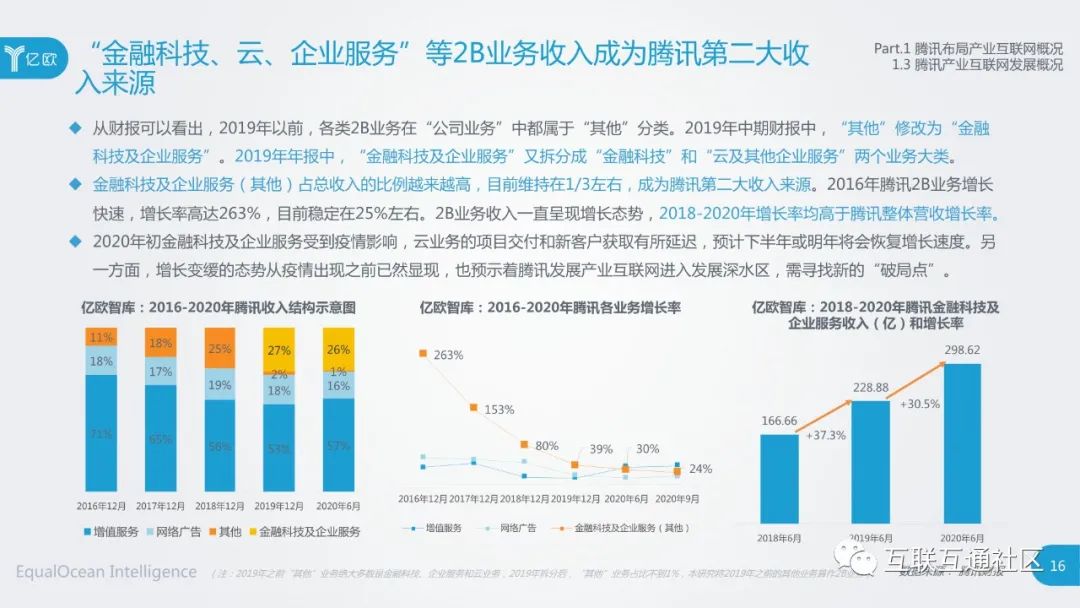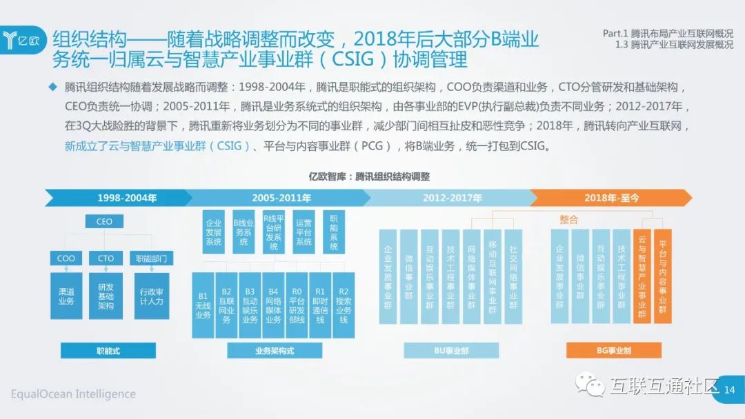 腾讯组织结构的变化随着总体战略的改变而调整,目前腾讯产业互联网布局仍在初期,2B业务已经成为腾讯第二大收入来源。