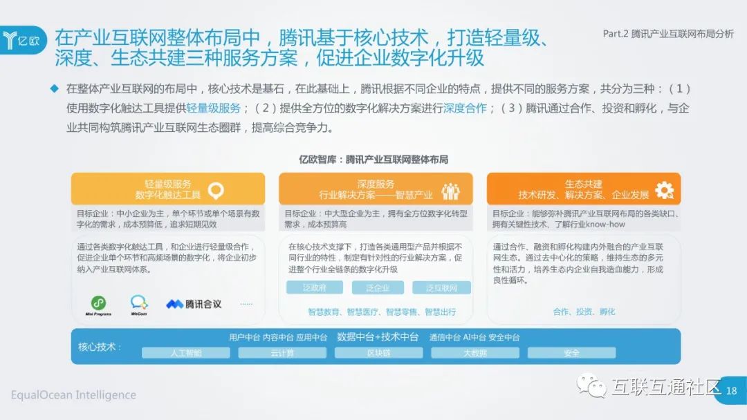 (4)生态共建——腾讯注重产业互联网生态的构建,生态构建贯穿每个环节,是产业互联网的 重要支撑。