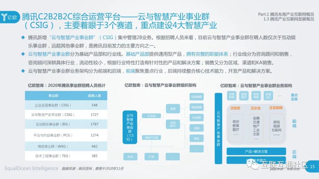 腾讯在2018年提出“扎根消费互联网,拥抱产业互联网”的公司战略,同时进行组织结构调整,新成立云与智慧产业事业群 (CSIG),统一管理产业互联网业务,象征着腾讯的发展方向正式从2C转向2B。