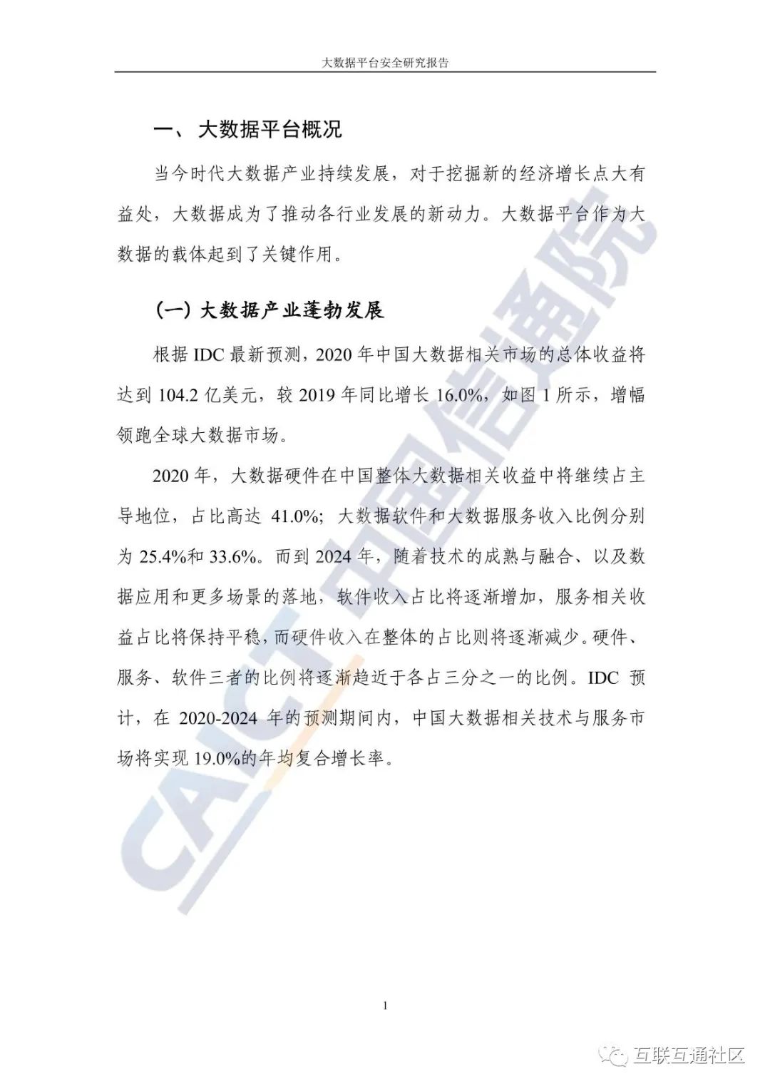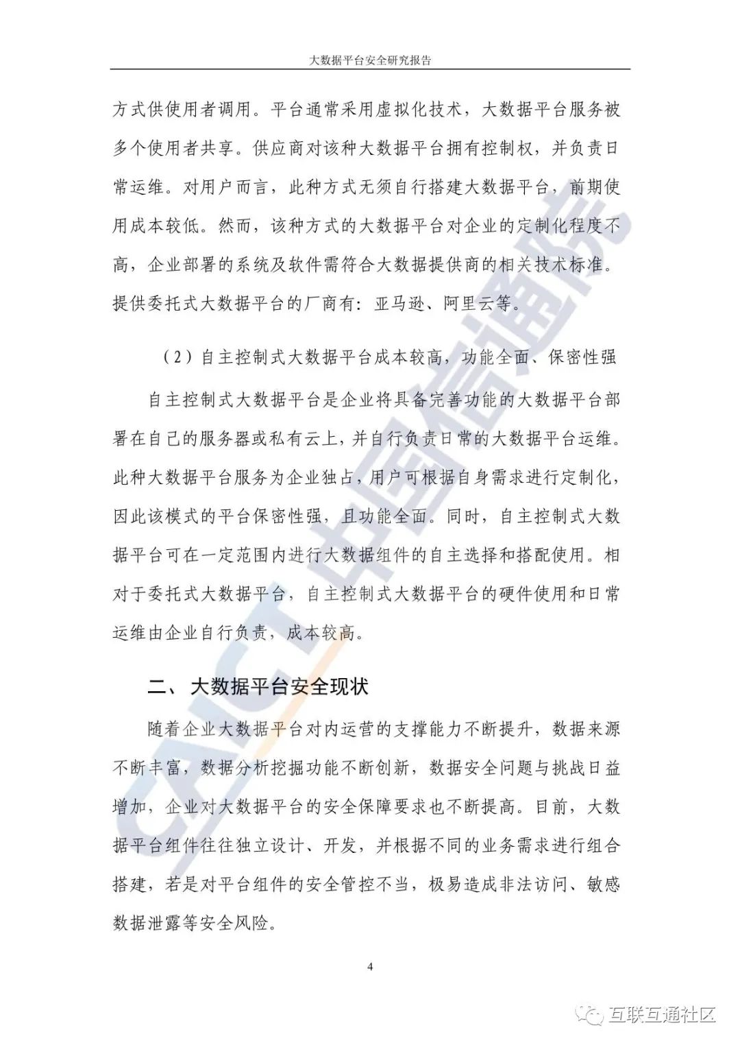关注公众号:【互联互通社区】,回复【大数据平台安全研究报告】获取全部报告内容。