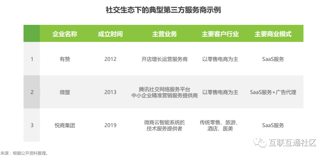 从产业视角来看,社交生态下微商市场的快速发展,除了为社交生态平台、品牌商户和消费者带来更多商业价值之外,也将催生出更多的赛道创新机会,尤其是提供第三方服务的相关企业,如有赞、微盟、悦商集团等。对平台方来说,在微商布局推进中需要大量第三方服务商帮助其挖掘创新模式与玩法,加速布局的推进和生态的成熟。对企业和从业者来说,也需要更多的赋能与支持,帮助其快速熟悉微商模式,实现更加高效和规范的销售与交易达成。