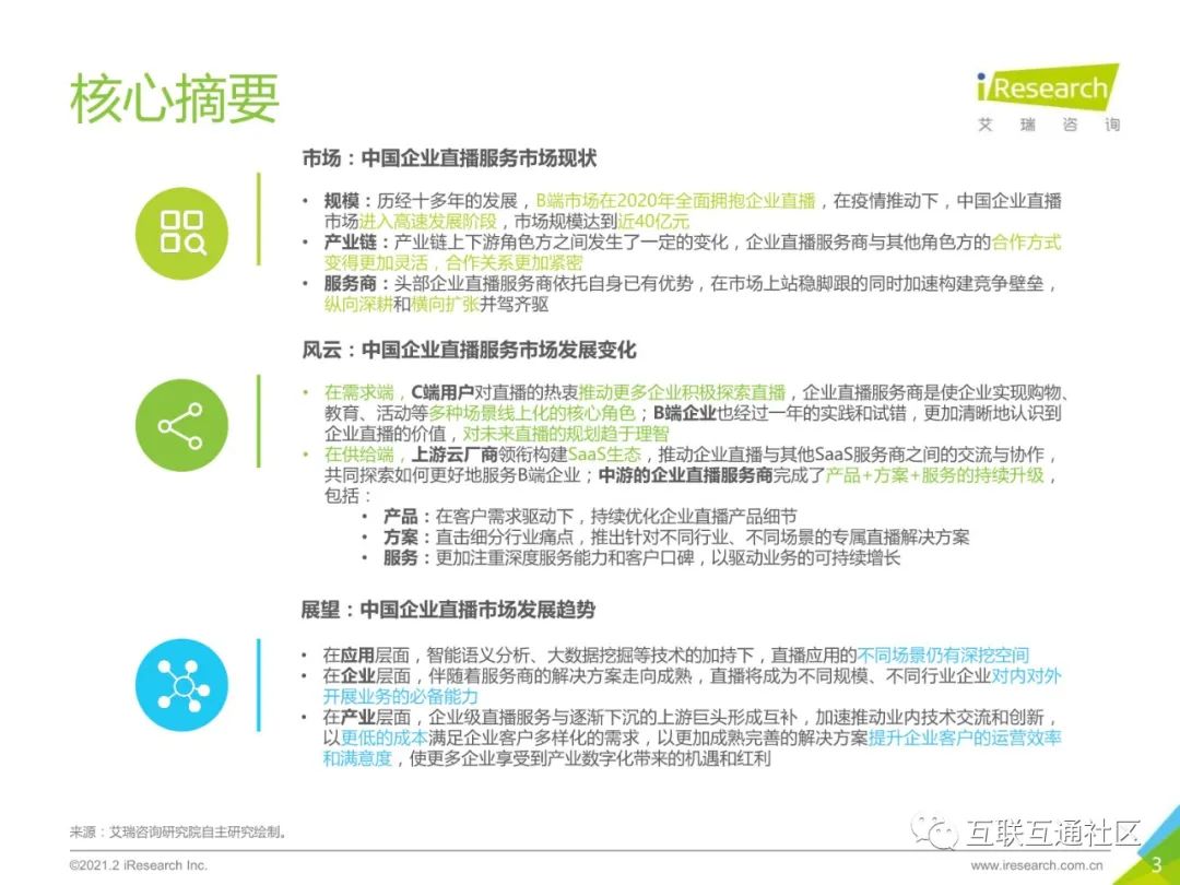 关注公众号:【互联互通社区】,回复【企业直播服务行业发展研究报告】获取全部报告内容。