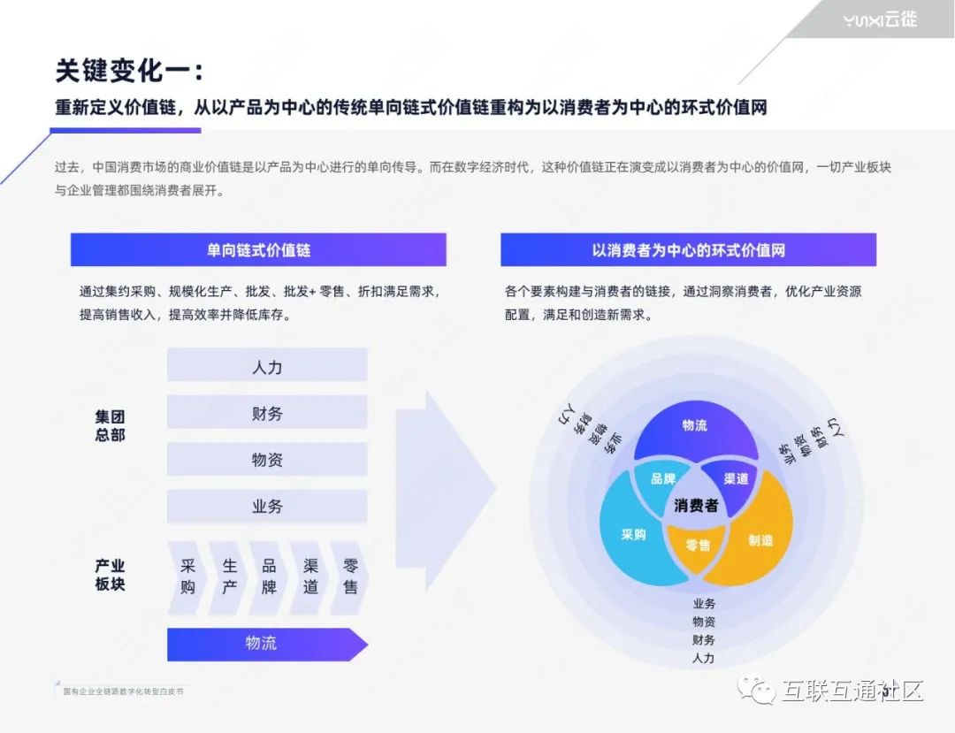 一,重新定义价值链,从以产品为中心的传统单向链式价值链重构为以消费者为中心的环式价值网;