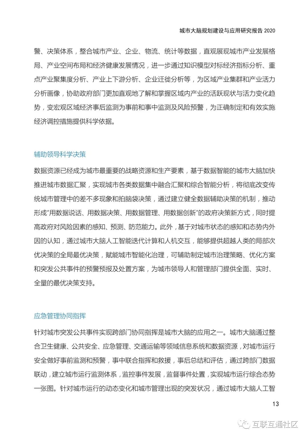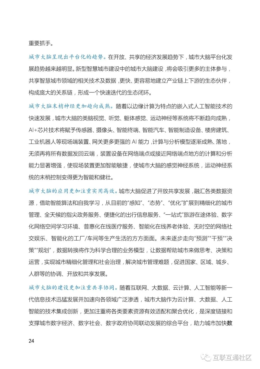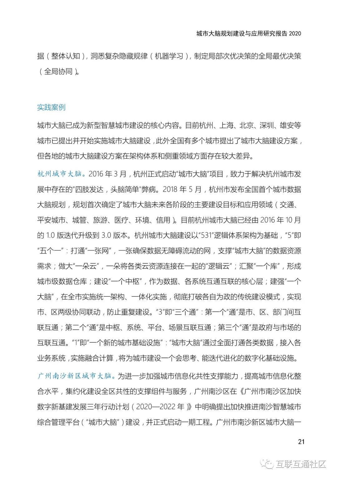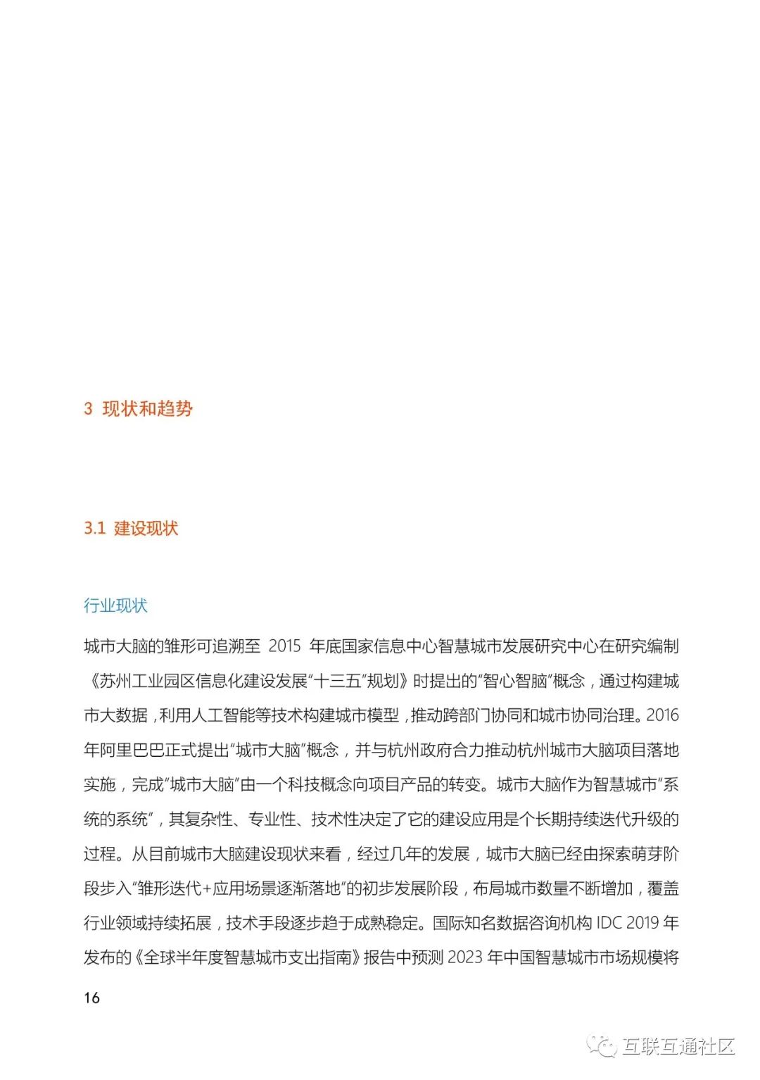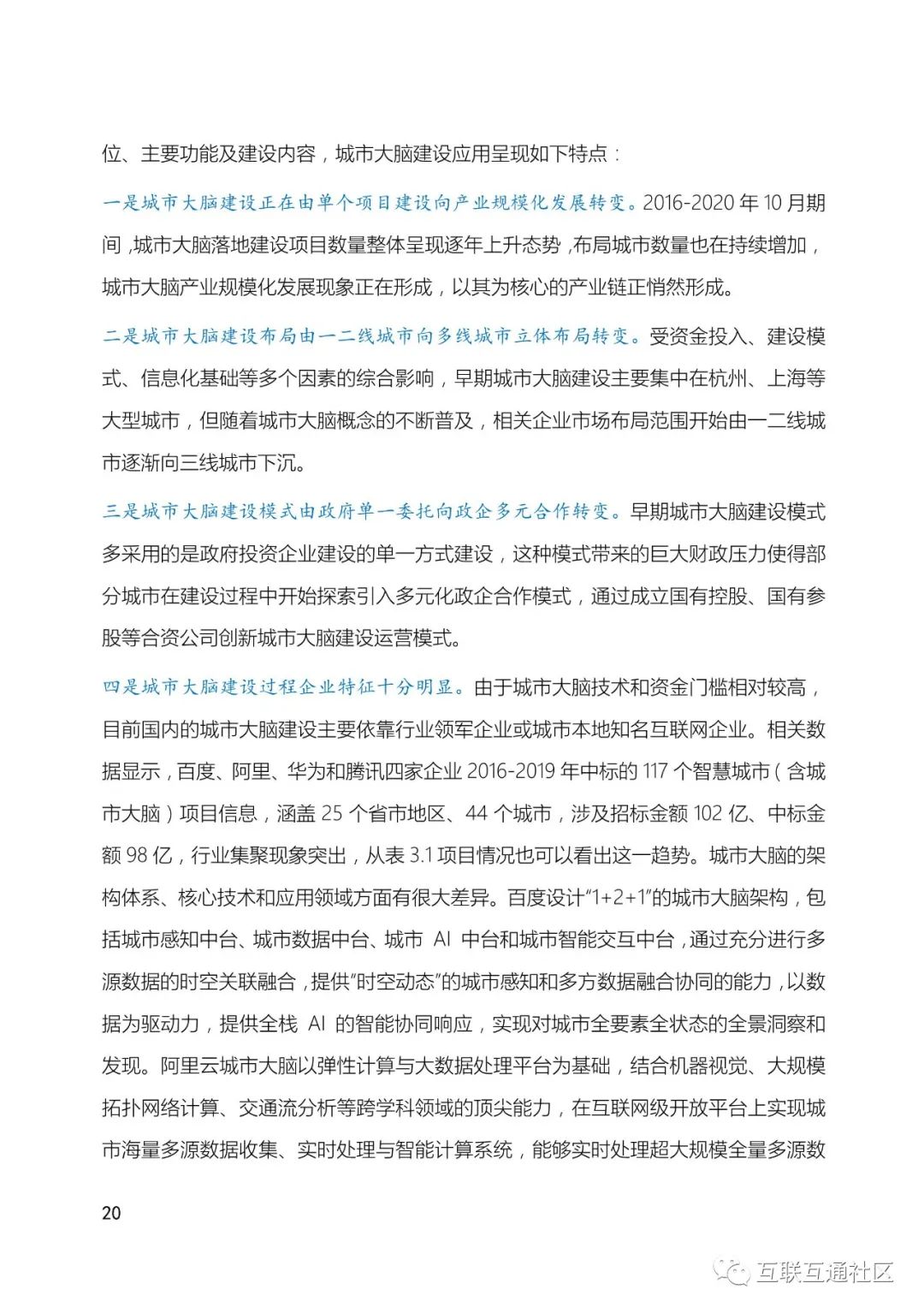 关注公众号:【互联互通社区】,回复【城市大脑规划建设与应用研究报告】获取全部报告内容。