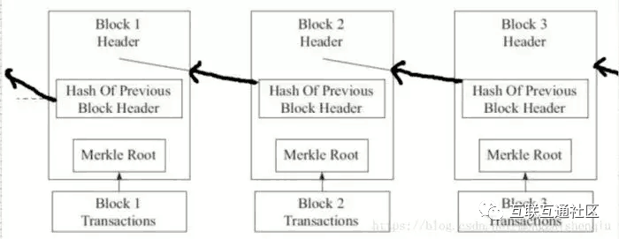从上面的区块结构中可以看到,每一个区块都保存了上一个区块的hash值,这样就将这些区块连接起来。