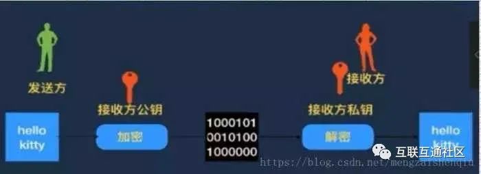 加密过程:原文+接收方公钥=》密文;解密过程:密文+接收方私钥=》原文