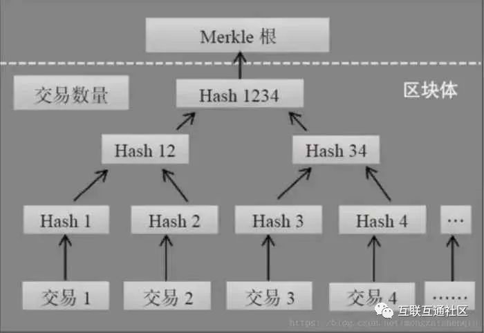 比特币区块链系统中的采用的是Merkle二叉树,它的作用主要是快速归纳和校验区块数据的完整性,它会将区块链中的数据分组进行哈希运算,向上不断递归运算产生新的哈希节点,最终只剩下一个Merkle根存入区块头中,每个哈希节点总是包含两个相邻的数据块或其哈希值。