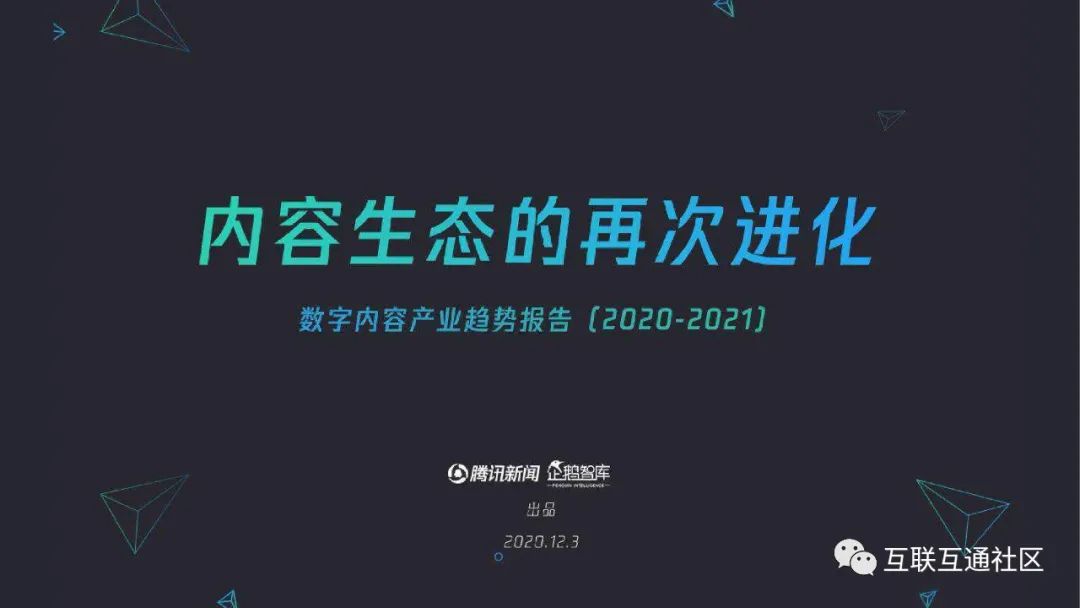关注公众号:【互联互通社区】,回复【2021数字内容产业趋势报告】获取全部报告内容。