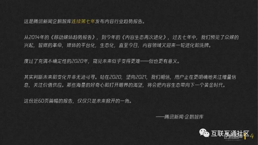 这是腾讯新闻企鹅智库连续第七年发布,关于内容行业的趋势报告。