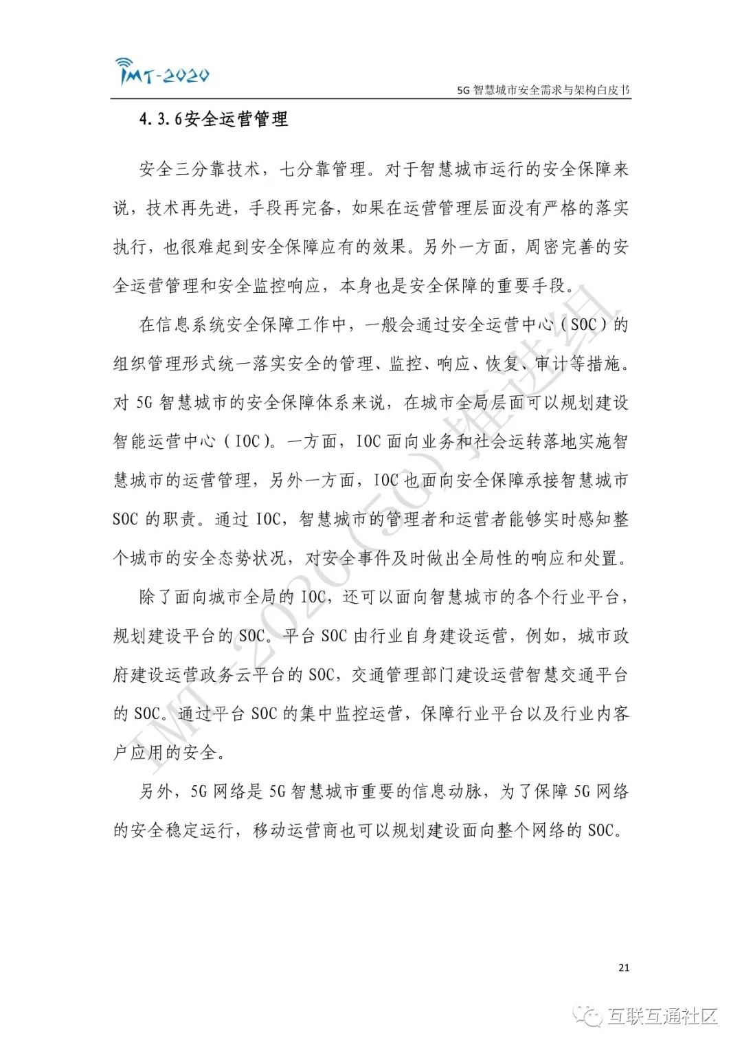 关注公众号:【互联互通社区】,回复【5G智慧城市安全需求与架构白皮书】获取全部报告内容。