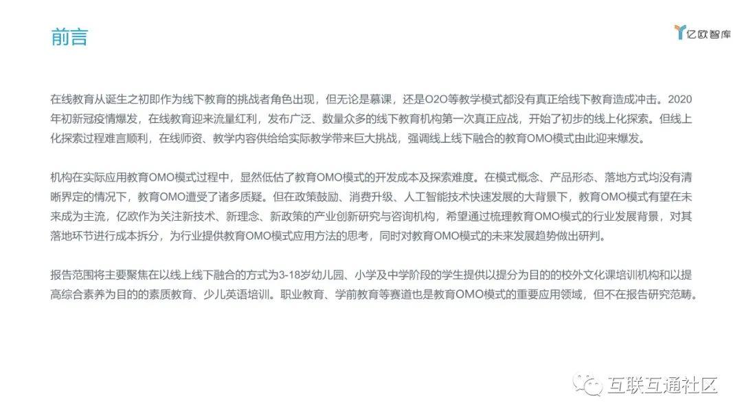 关注公众号:【互联互通社区】,回复【2020教育OMO模式落地应用研究报告】获取全部报告内容。