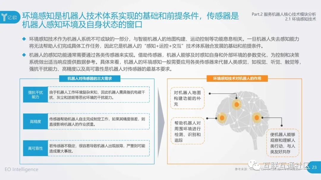 服务机器人核心技术模块分为环境感知技术、运动控制技术、人机交互技术、操作系统技术和芯片技术。