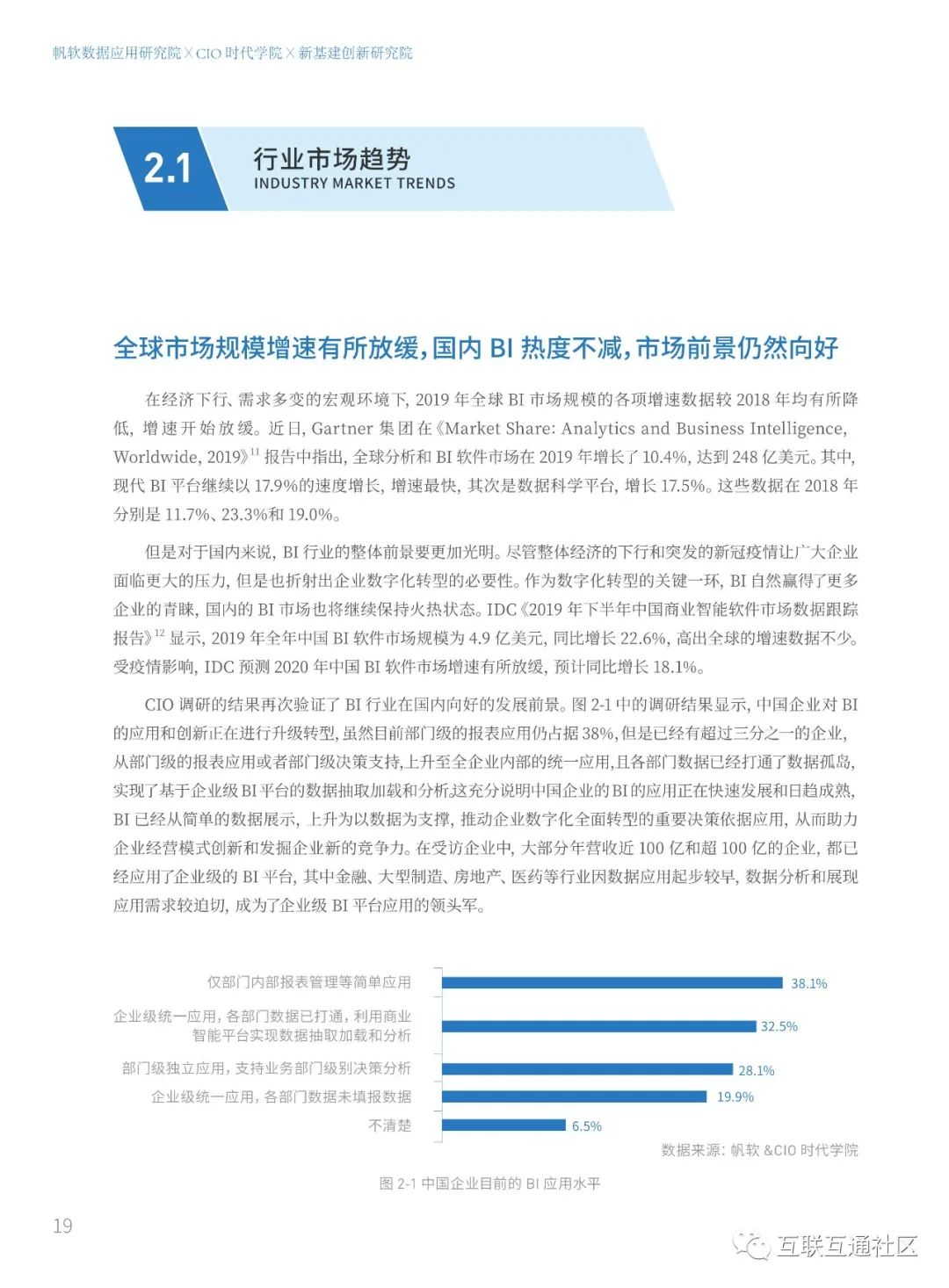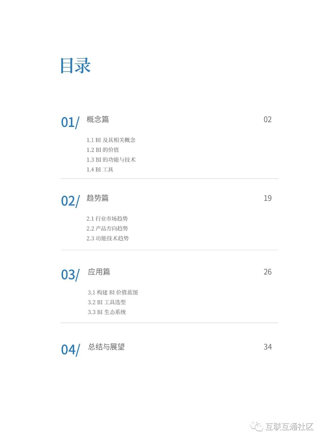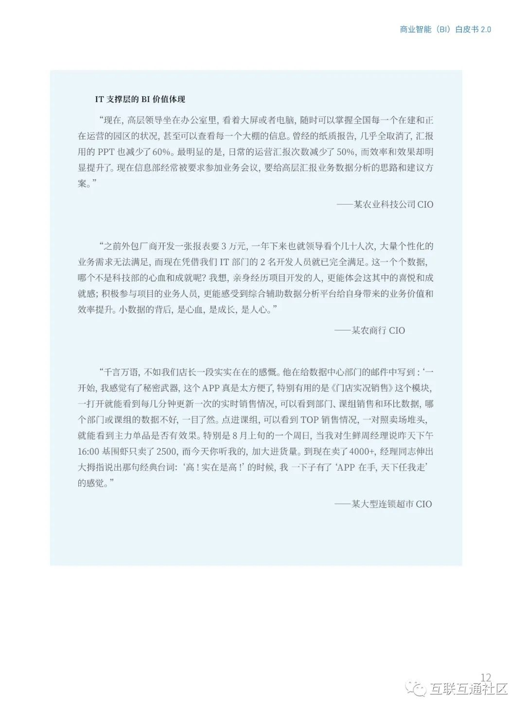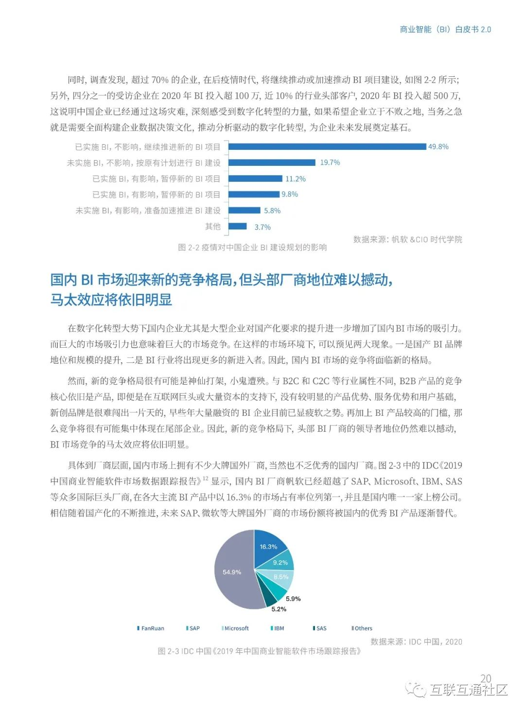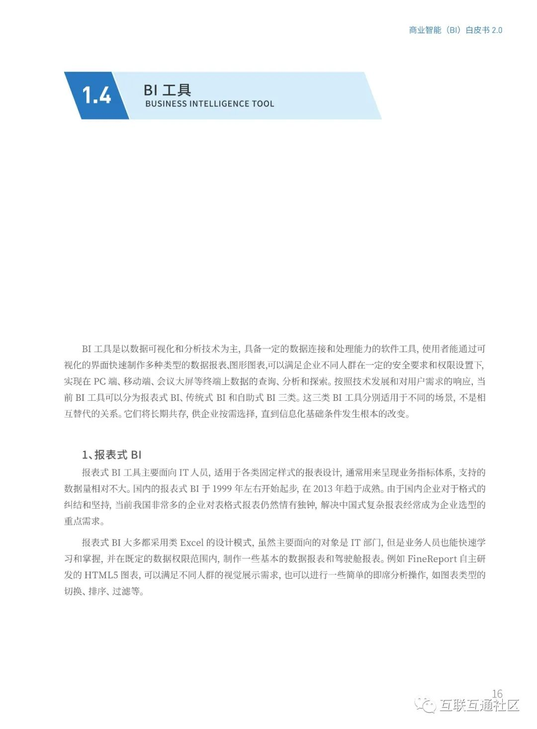 关注公众号:【互联互通社区】,回复【商业智能白皮书2.0】获取全部报告内容。