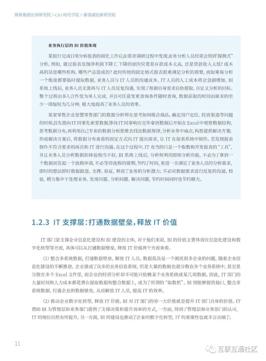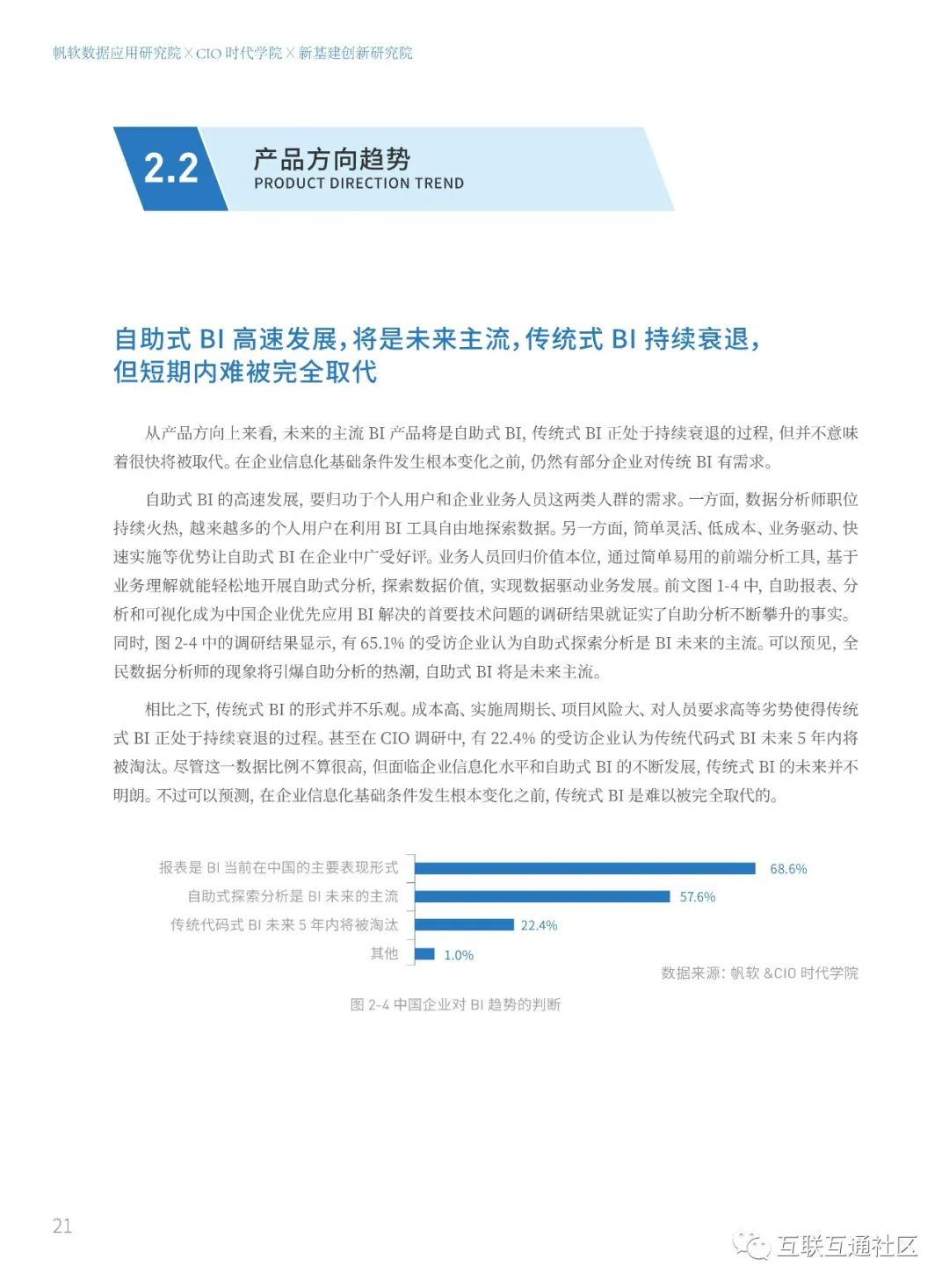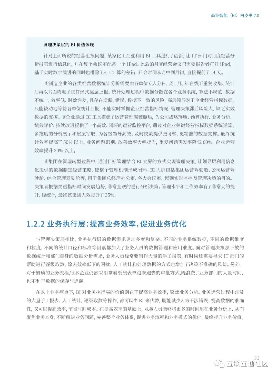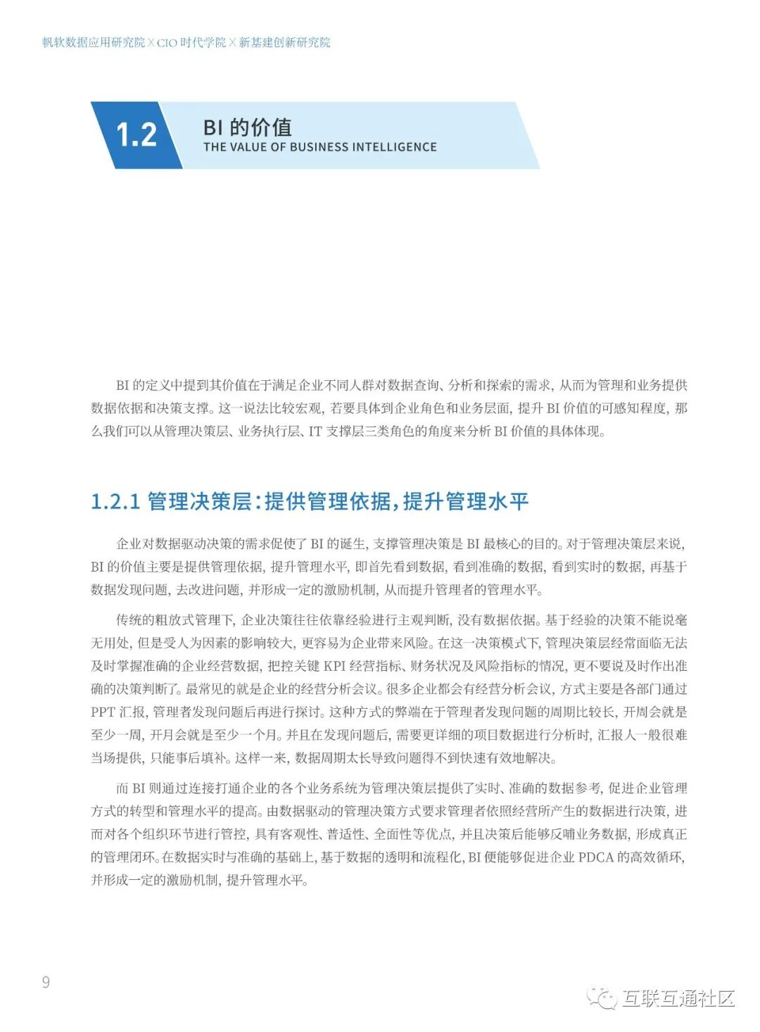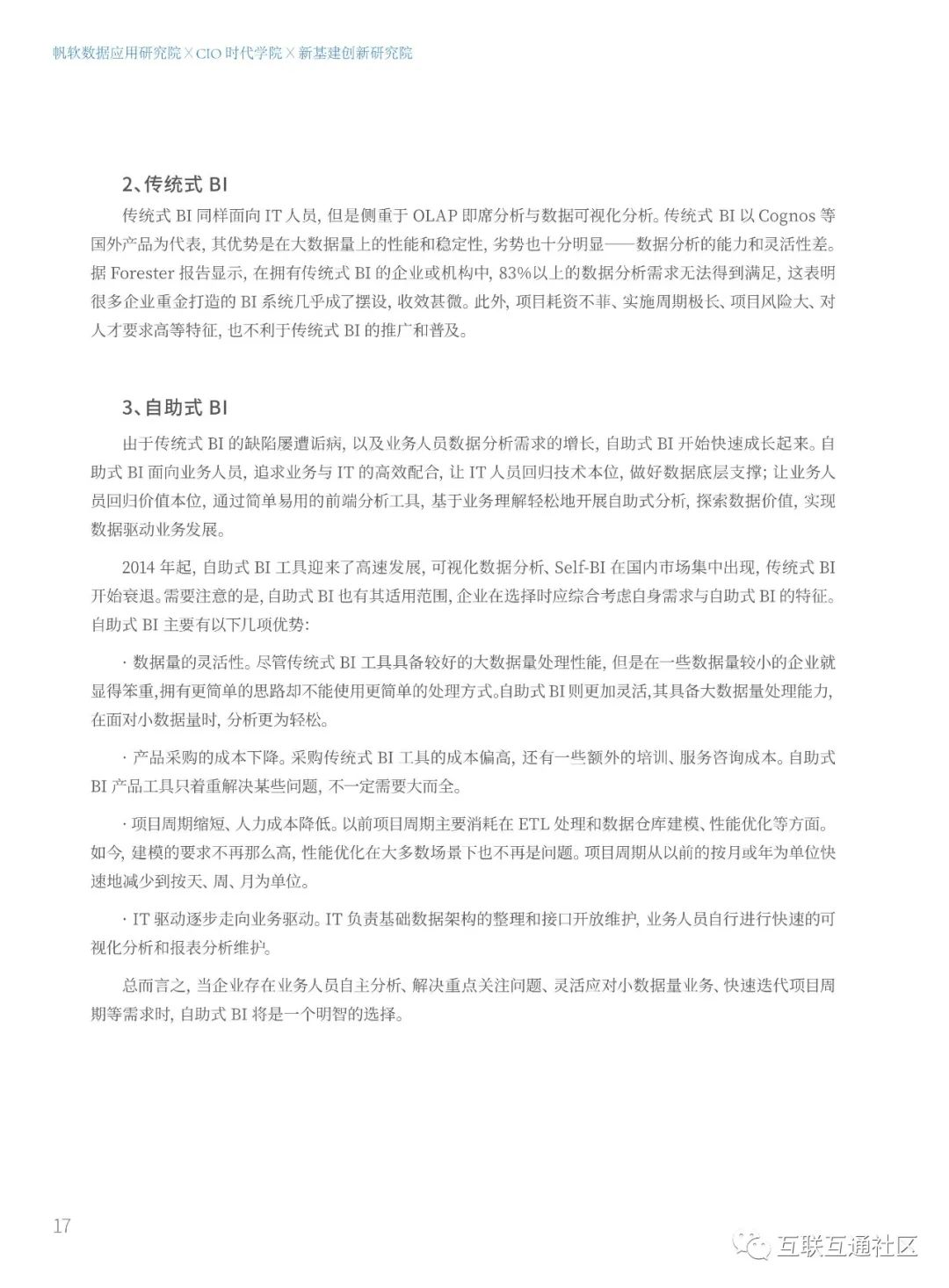 关注公众号:【互联互通社区】,回复【商业智能白皮书2.0】获取全部报告内容。