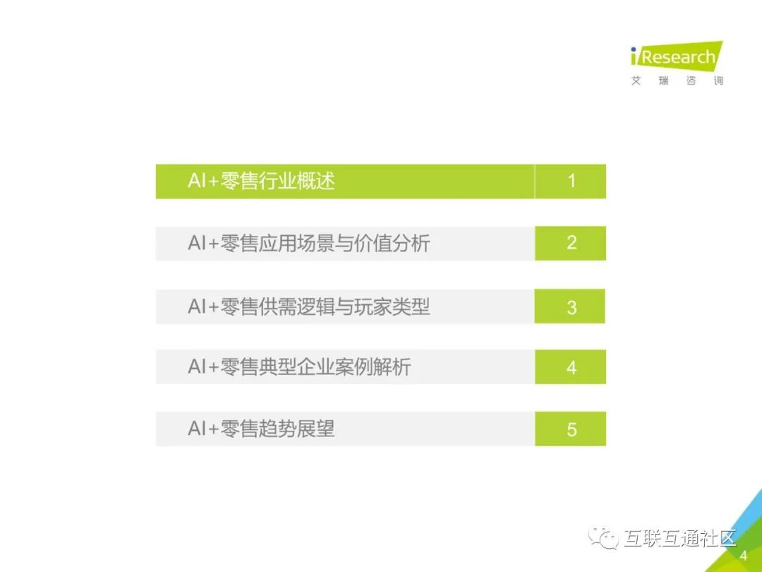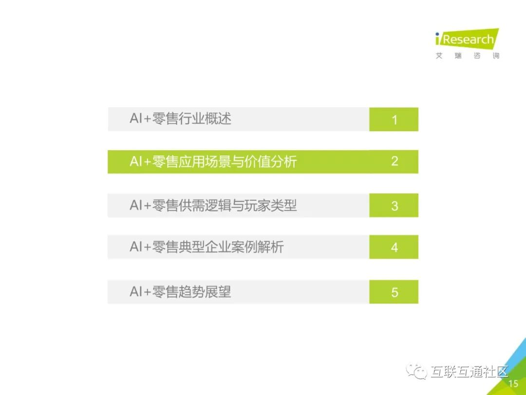 关注公众号:【互联互通社区】,回复【中国AI+零售行业发展研究报告】获取全部报告内容。