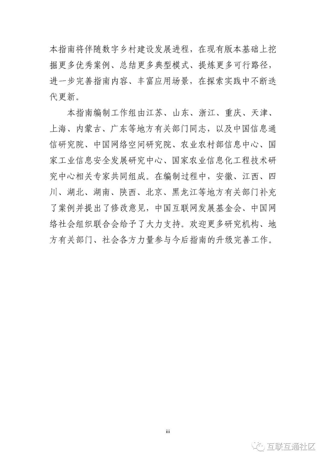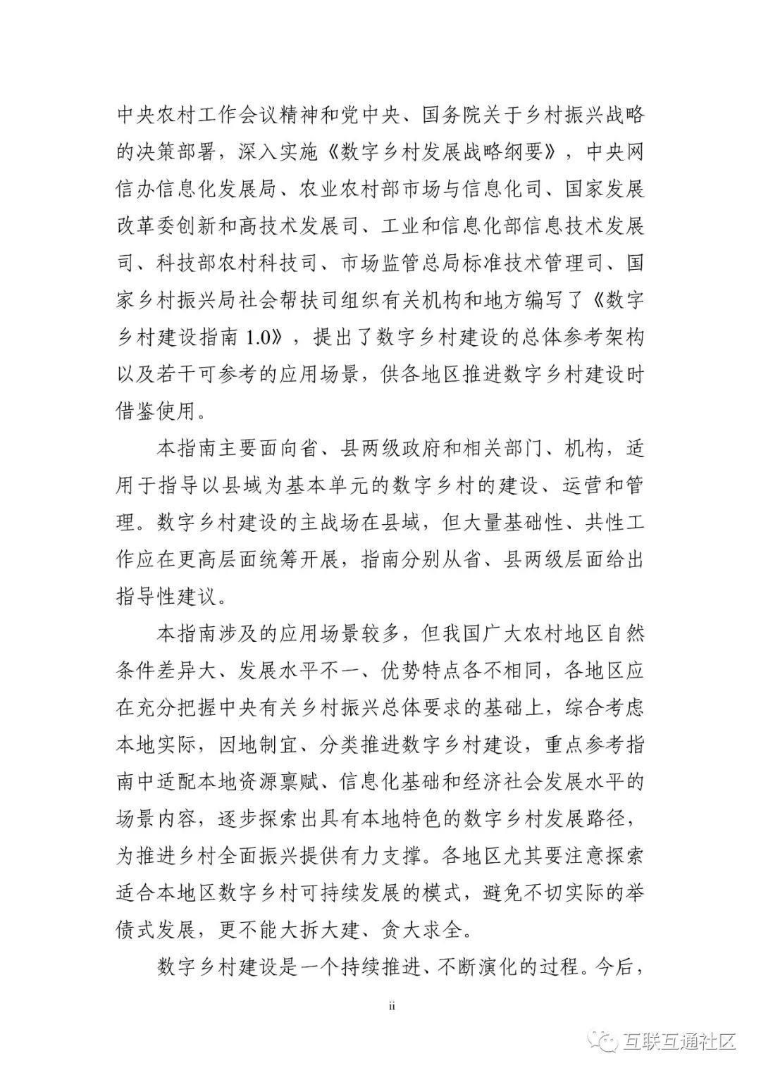 本指南主要面向省、县两级政府和相关部门、机构,适 用于指导以县域为基本单元的数字乡村的建设、运营和管 理。数字乡村建设的主战场在县域,但大量基础性、共性工 作应在更高层面统筹开展,指南分别从省、县两级层面给出 指导性建议。