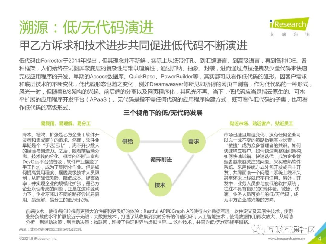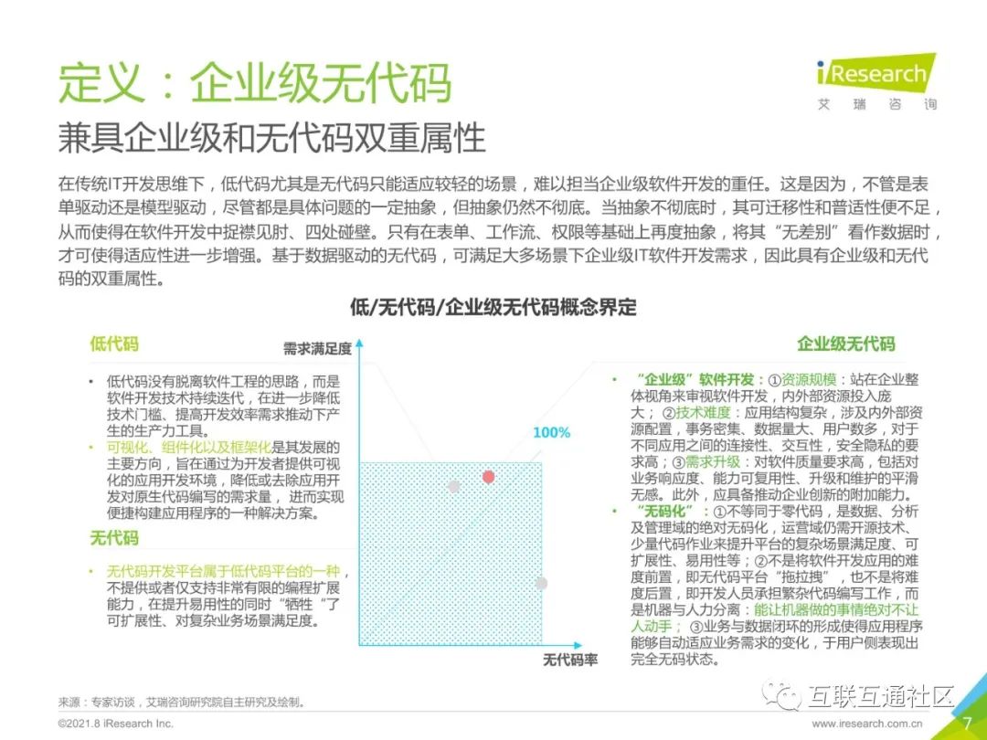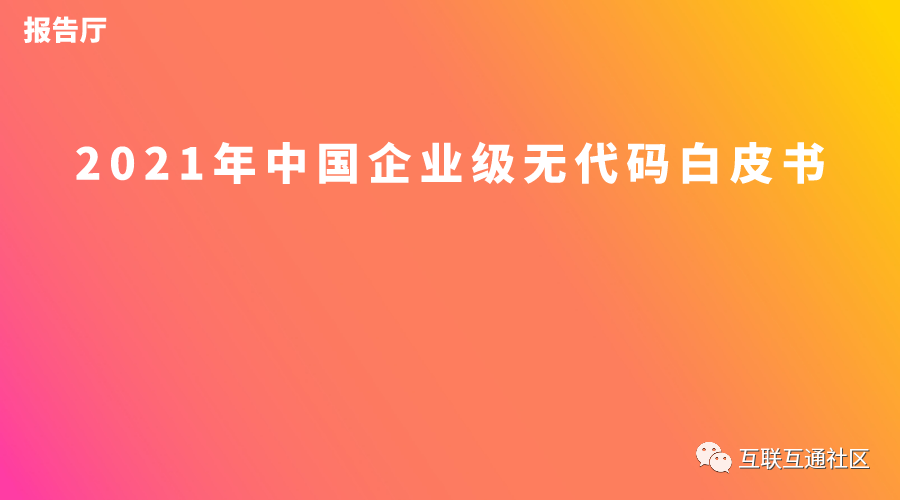 关注公众号:【互联互通社区】,回复【2021企业无代码白皮书】获取全部报告内容。