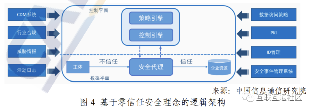 基于零信任安全理念的逻辑架构核心逻辑组件主要分为三部分: