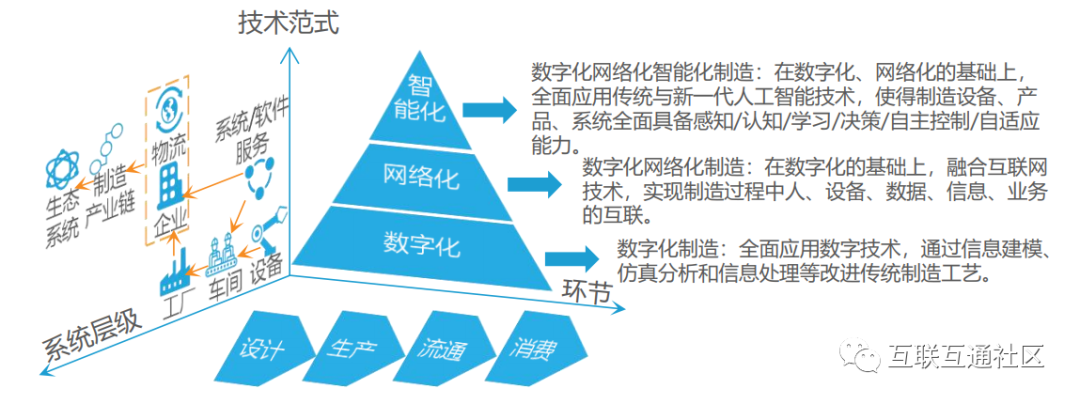 《智能制造发展规划(2016-2020年)》定义智能制造是基于新一代信息通信技术与先进制造技术深度融合,贯穿于设计、生产、管理、服务等制造活动的各个环节,具有自感知、自学习、自决策、自执行、自适应等功能的新型生产方式。清华大学自动化系吴澄教授定义智能制造为以智能技术为代表的新一代信息技术在制造全生命周期的应用中所涉及的理论、方法、技术和应用。