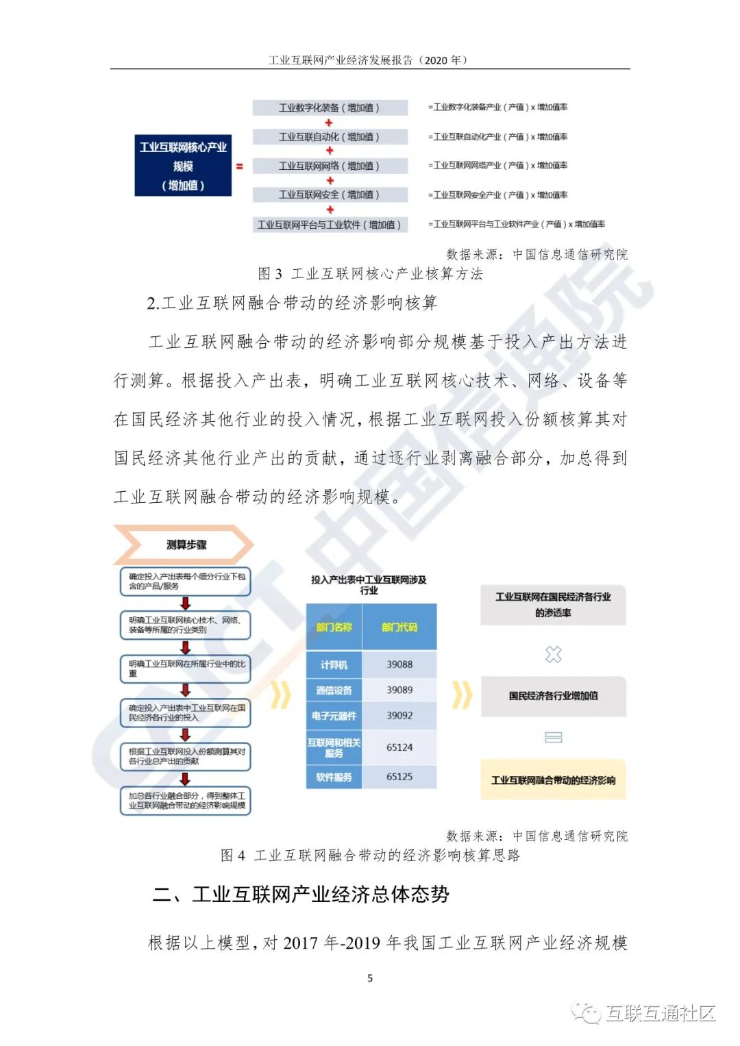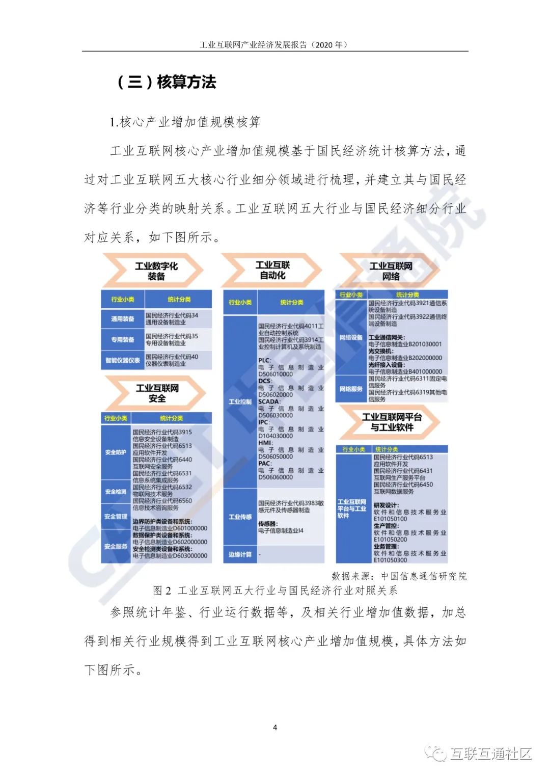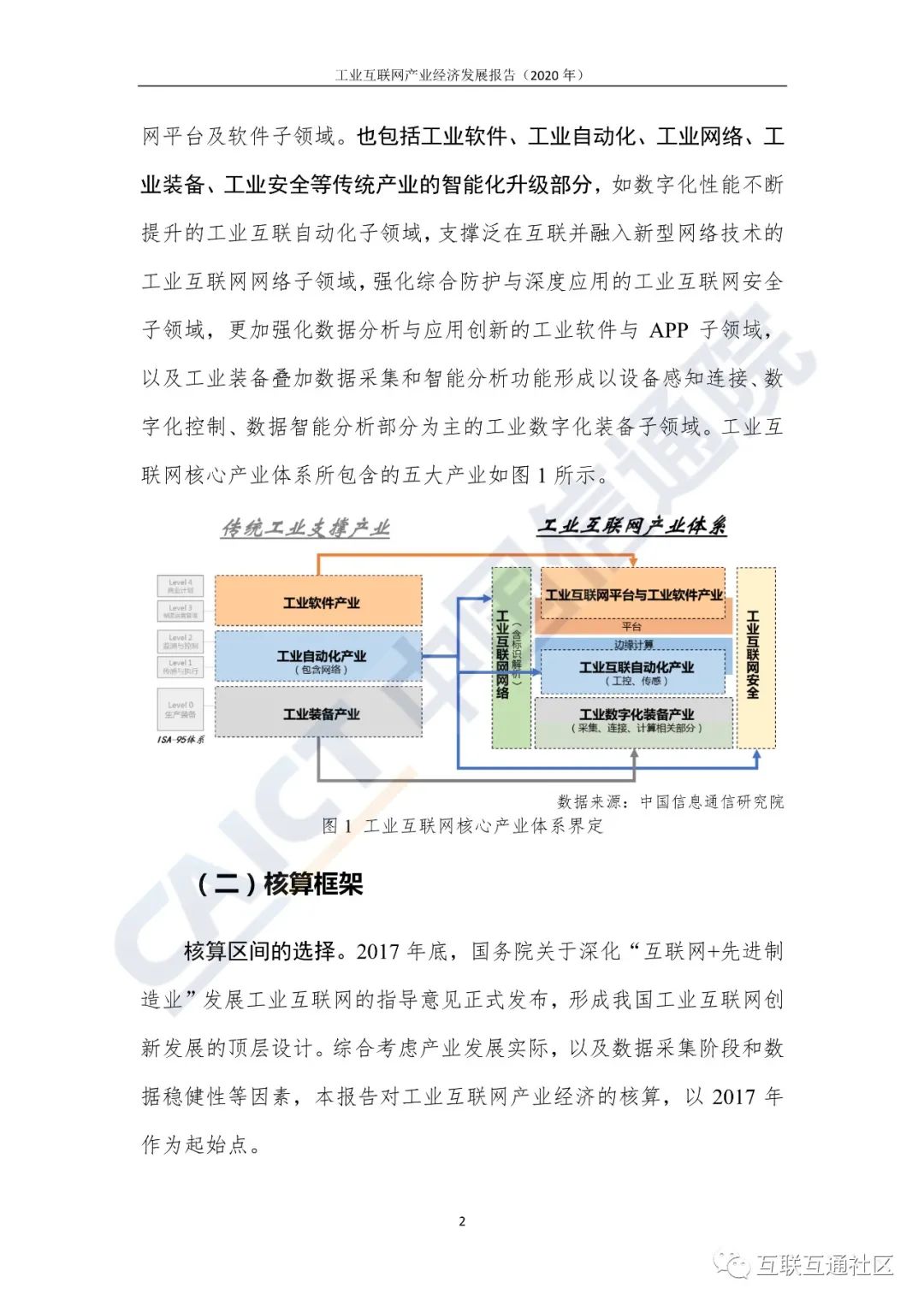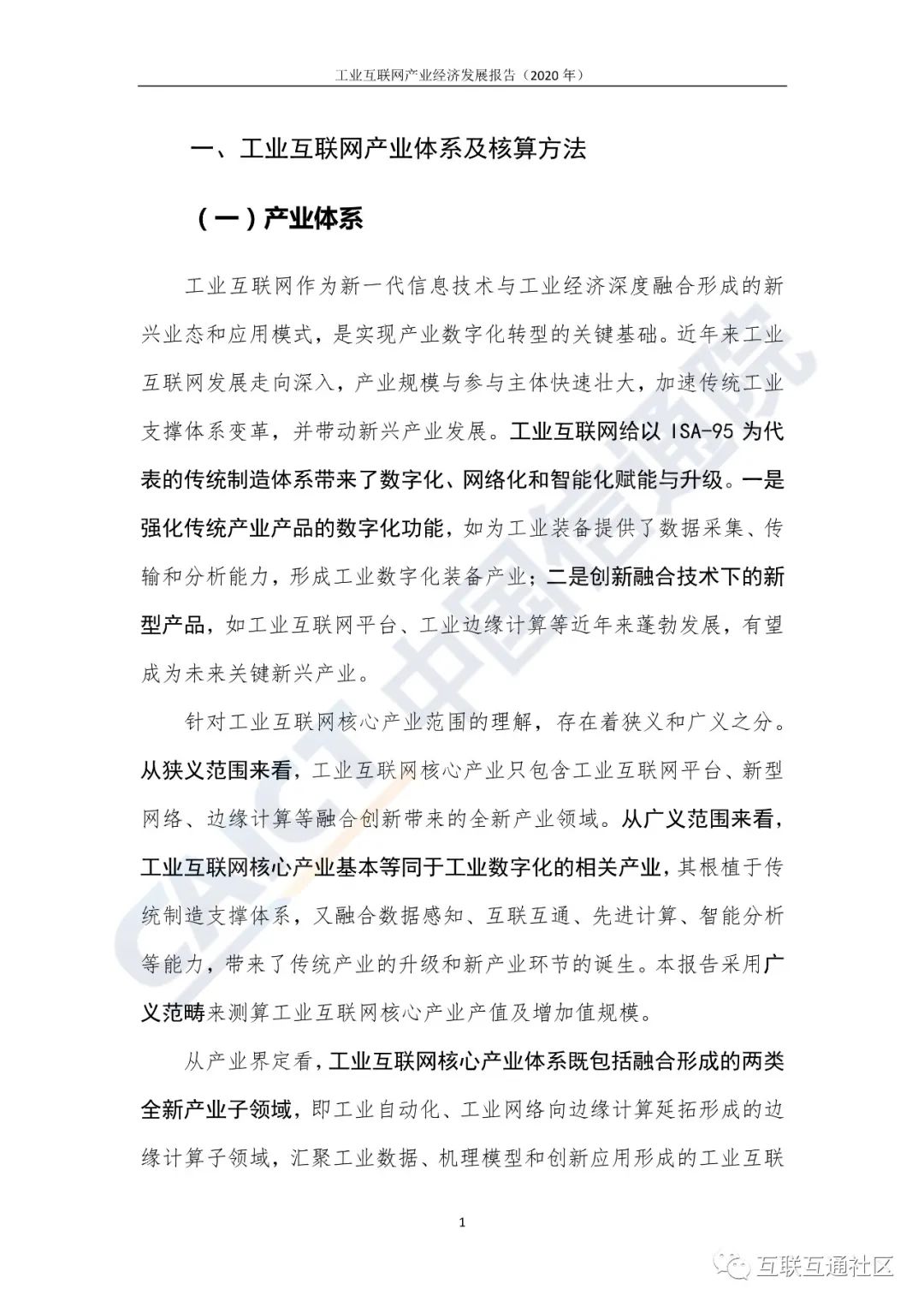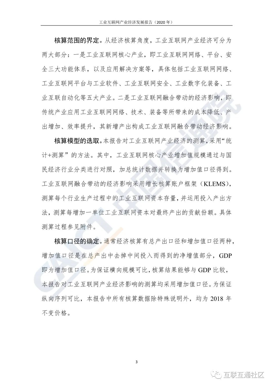 工业互联网是新一代信息技术与工业经济深度融合的全新经济 生态、关键基础设施和新型应用模式,通过人、机、物的全面互联, 实现全要素、全产业链、全价值链的全面连接,将推动形成全新的生 产制造和服务体系。工业互联网产业经济核算包括核心产业和融合带 动的经济影响两部分。