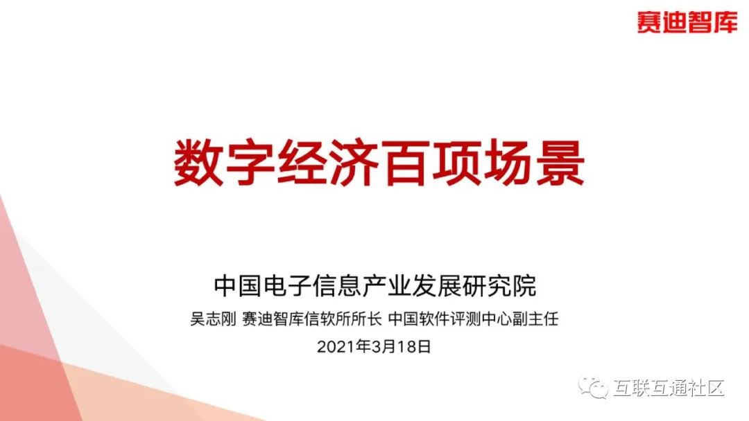 在中国电子信息产业发展研究院(赛迪研究院)主办的首届赛迪产业经济论上,中国电子信息产业发展研究院信息化与软件产业研究所所长吴志刚发布了《数字经济百项场景》。