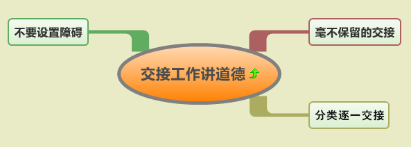 把工作中形成的经验教训毫不保留的交接给继任者,把完成的与未竟的工作分类逐一交接,不要设置障碍,使其迅速进入工作角色。