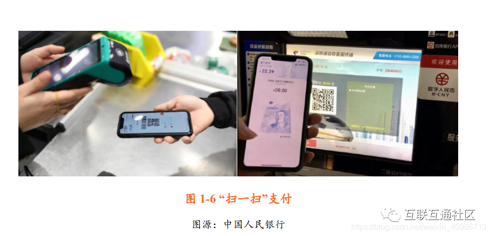 从试点过程中的支付方式来看,“扫一扫”和“碰一碰”是主要的两种近程支付方式。“扫一扫”使用的是目前已经广泛应用的二维码支付方案,是一种近程在线支付方式,用 户使用数字人民币 APP 扫描商户二维码或者出示付款码,可轻松快捷完成相关支付。