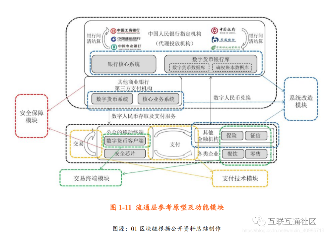 为支撑这种支付方式,并围绕这些支付方式构建适合的金融体系,流通机构必须做 出相应的技术变革。包括银行核心系统、数据库、POS 机等,相关行业的业务流程也会发生变化,如征信行业可以利用央行批准的更详实的交易数据为信贷行业提供更合理的 用户信用评估。具体改造内容可分为安全保障模块、系统改造模块、交易终端模块和支 付技术模块四部分。