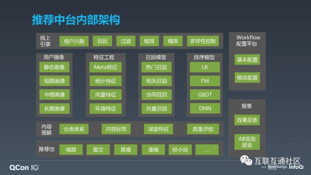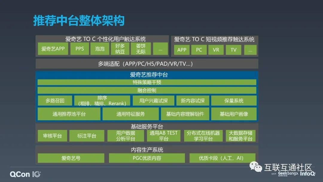 爱奇艺推荐中台是爱奇艺推荐系统团队在多年的推荐业务实践工作中总结提炼出的一套通用推荐框架,旨在帮助公司内各业务团队能够以低成本、高效率、高产出的方式搭建出一套完整的推荐服务及其周边配套设施,快速实现自身业务目标。本次分享将从推荐池、行为日志处理平台、用户画像平台、特征平台、召回模型仓库、排序模型仓库、线上引擎、报表分析平台等方面逐一介绍推荐中台的经验和反思。