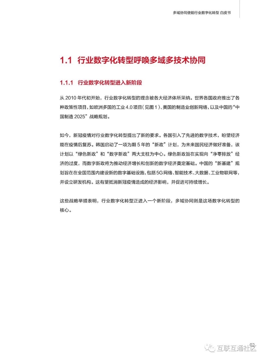 行业数字化转型的概念从 2010 年后开始被各大经济体所接受。而新冠疫情 使这种转型的需求变得更为迫切。各国引入了先进的数字技术,盼望经济能 在疫情后复苏。韩国的“数字新政”和中国的“新基建”计划都旨在为数字 经济奠定基础,促进可持续增长。这些战略举措预示着行业数字化转型正进 入一个新的阶段。