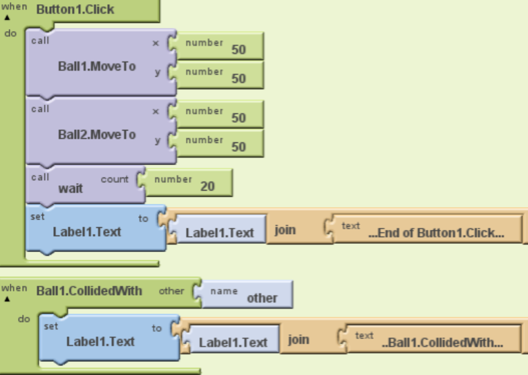 最终的标签显示始终是:“... Button1.Click ...... Ball1.CollidedWith ......”。