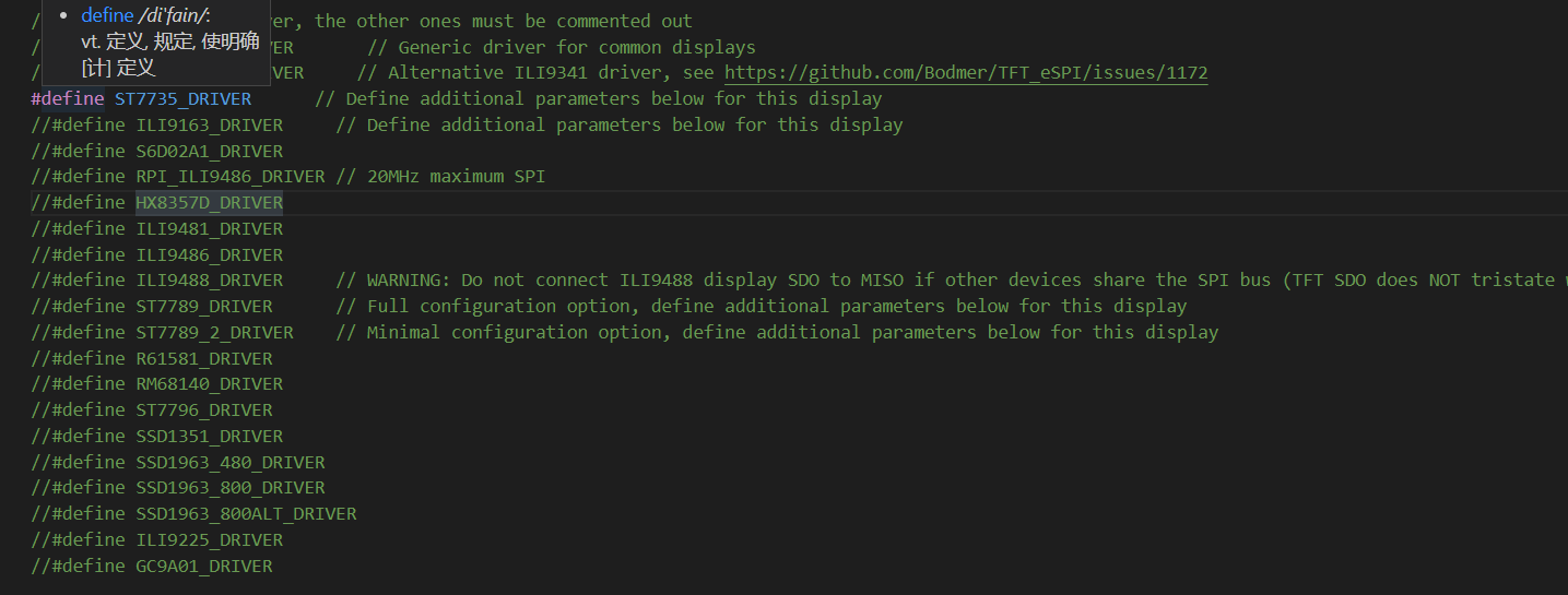 下来是按注释来修改User_Setup.h,位置在.pio\libdeps\esp32dev\TFT_eSPI\User_Setup.h