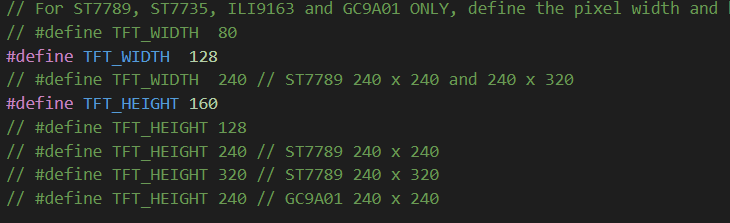 第三步 仅对于ST7735,定义显示的类型,最初是基于屏幕保护膜上的标签颜色,但这并不总是正确的,所以请尝试