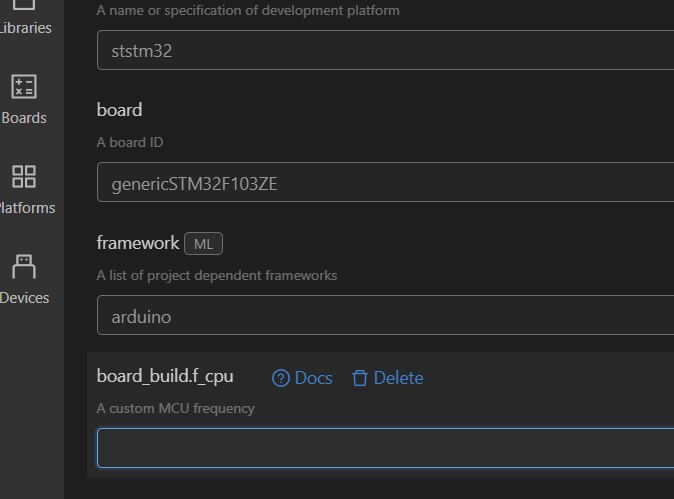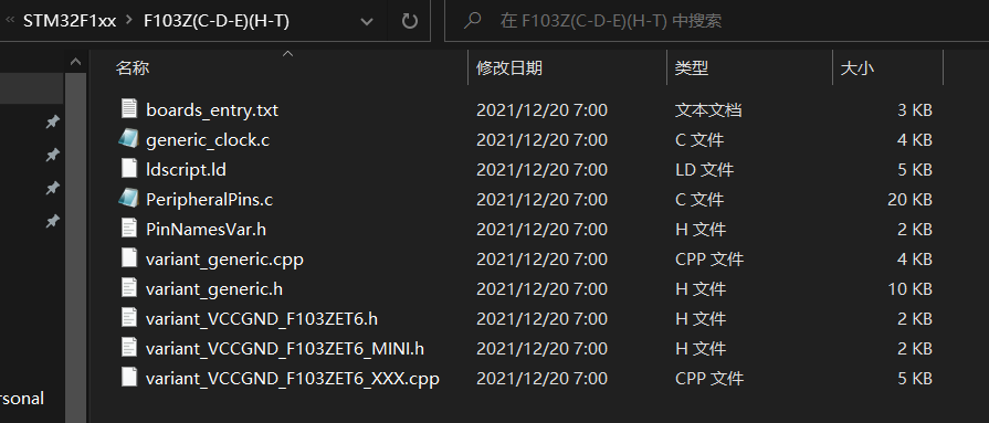 原来那一句GenF1.menu.pnum.VCCGND_F103ZET6.build.variant_h=variant_{build.board}.h 是对应在这的开发板自己定义的。h文件。查看跟通用f103的区别 。原来是 variant_VCCGND_F103ZET6_XXX.cpp里多了rcc的设置。对比下跟generic_clock.c的区别