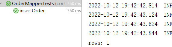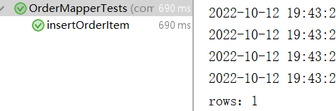 @Test public void insertOrder(){ Order order = new Order(); order.setUid(6); order.setRecvName("小库"); Integer rows = orderMapper.insertOrder(order); System.out.println("rows:" + rows); } @Test public void insertOrderItem(){ OrderItem orderItem = new OrderItem(); orderItem.setOid(1); orderItem.setPid(2); orderItem.setTitle("高档铅笔"); Integer rows = orderMapper.insertOrderItem(orderItem); System.out.println("rows:" + rows); }