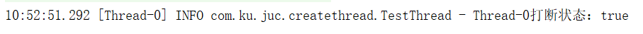 Logger log = LoggerFactory.getLogger(TestThread.class); Thread t1 = new Thread(() -> { while(true){ Thread current = Thread.currentThread(); boolean interrupted = current.isInterrupted(); if (interrupted){ log.info(Thread.currentThread().getName()+",打断状态:{}",interrupted); break; } } }); t1.start(); Thread.sleep(500); t1.interrupt();