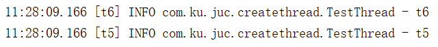 Thread t5 = new Thread(() -> { log.info(Thread.currentThread().getName()); }, "t5"); Thread t6 = new Thread(() -> { log.info(Thread.currentThread().getName()); }, "t6"); t5.start(); t6.start();