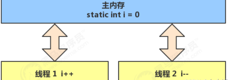 一个程序执行多个线程是没有问题的,问题出在多个线程去访问同一个共享资源;多个线程区访问多个共享资源的时候容易出现上述指令交错的情况,即i++和i--是在进行完赋值操作之后进行了上下文切换导致改变的值并没有存入到主存中,引起了结果的错误。