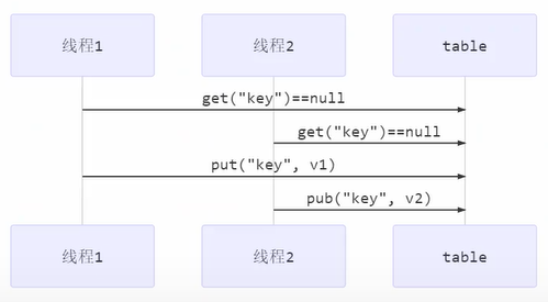 从上图,我们可以看到,当两个线程都获取key为空的时候发生上下文切换吗,此时都会执行put操作,但是后面的put会覆盖前面的put,此时就会造成结果错误。