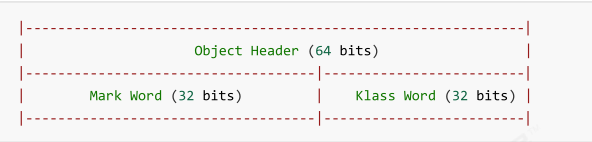 该对象头是由Mark Word(占32bits)、Klass Word(32 bits)组成,Mark Word包含GC年龄(即多久被垃圾回收器回收)、锁标记(与本文后面所讲紧密及相关)、hashCOde(对象创建时不更新到对象头的Mark Word中,只有调用hashCode()方法才更新到对象头中);Klass Word表示类型指针。