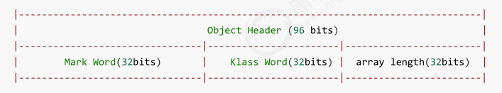 下面是数组对象的对象头,它比普通对象多了一个数组长度array length(占32bits):