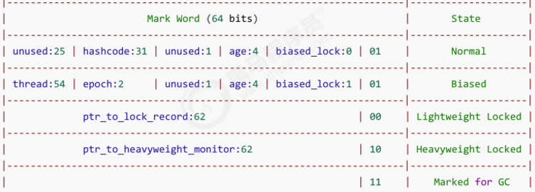 在上图中Mark Word在不同状态下,它所包含的结构不同。