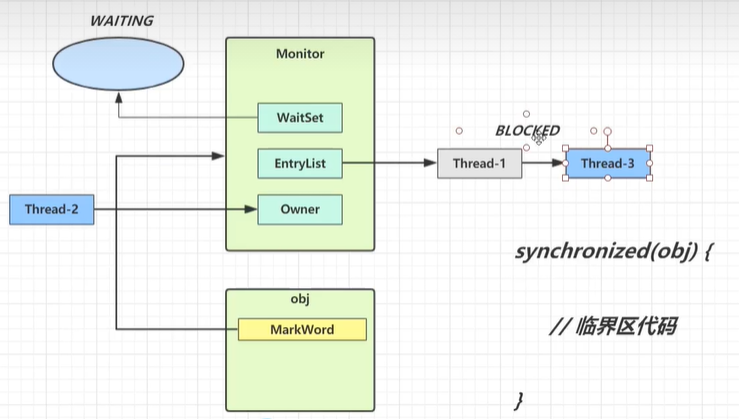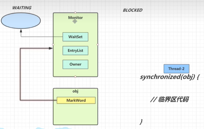 - 当Thread-2在上锁的过程中,其它线程也来执行synchronized,就会进入EntryList进行阻塞;