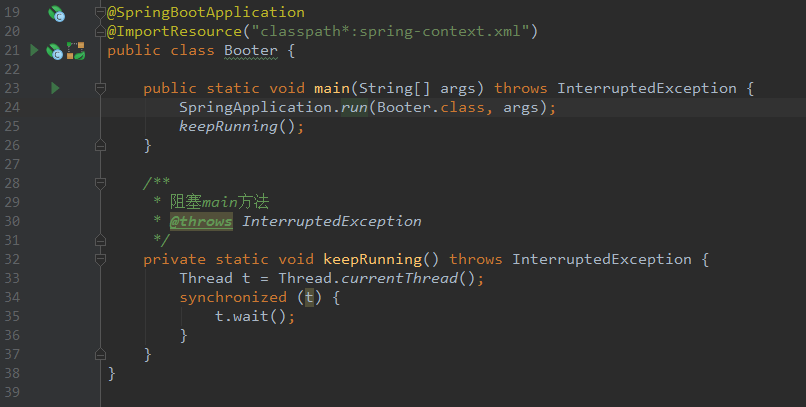 - @SpringBootConfiguration(内部为@Configuration):被标注的类等于在spring的XML配置文件中(applicationContext.xml),装配所有bean事务,提供了一个spring的上下文环境
