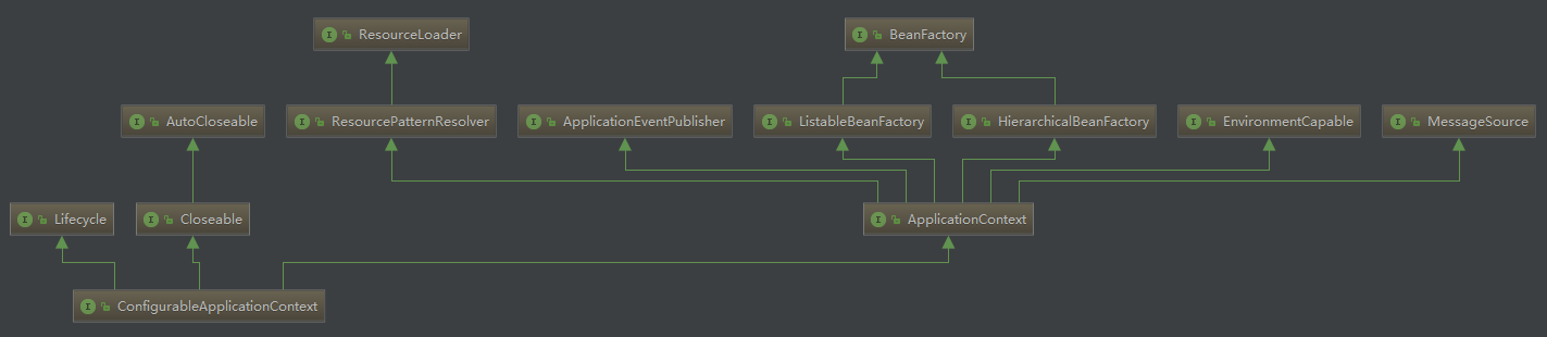 ApplicationContext:应用上下文类,其主要继承了beanFactory(bean的工厂类)