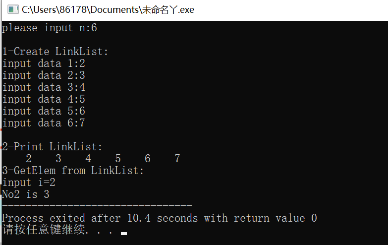 printf("\n3-GetElem from LinkList:\n");