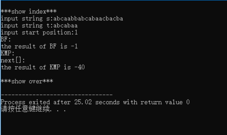 printf("the result of KMP is %d\n",index_kmp(&s,&t,k,next));