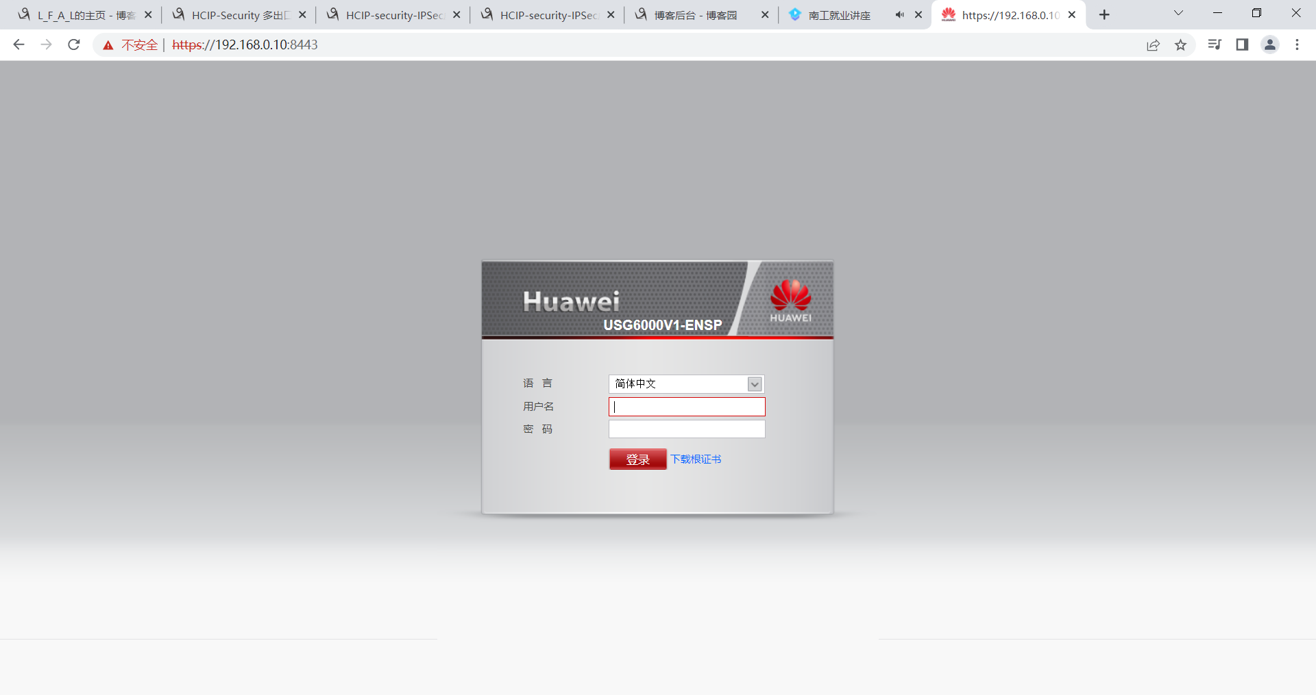 MGPT_PC是ENSP桥接到我本地的物理机,可以通过浏览器进行图形化管理FW1。