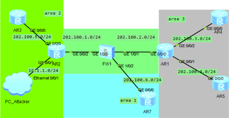 [FW1]ip route-static 0.0.0.0 0 202.100.1.2 [FW1-GigabitEthernet1/0/0]ip urpf strict